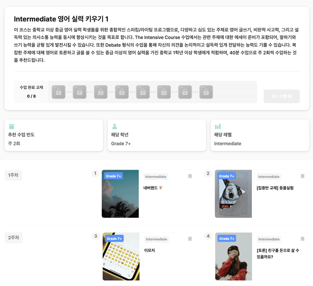 초등 저학년부터 중학교까지 맞춤 코스로 수강할 수 있습니다.