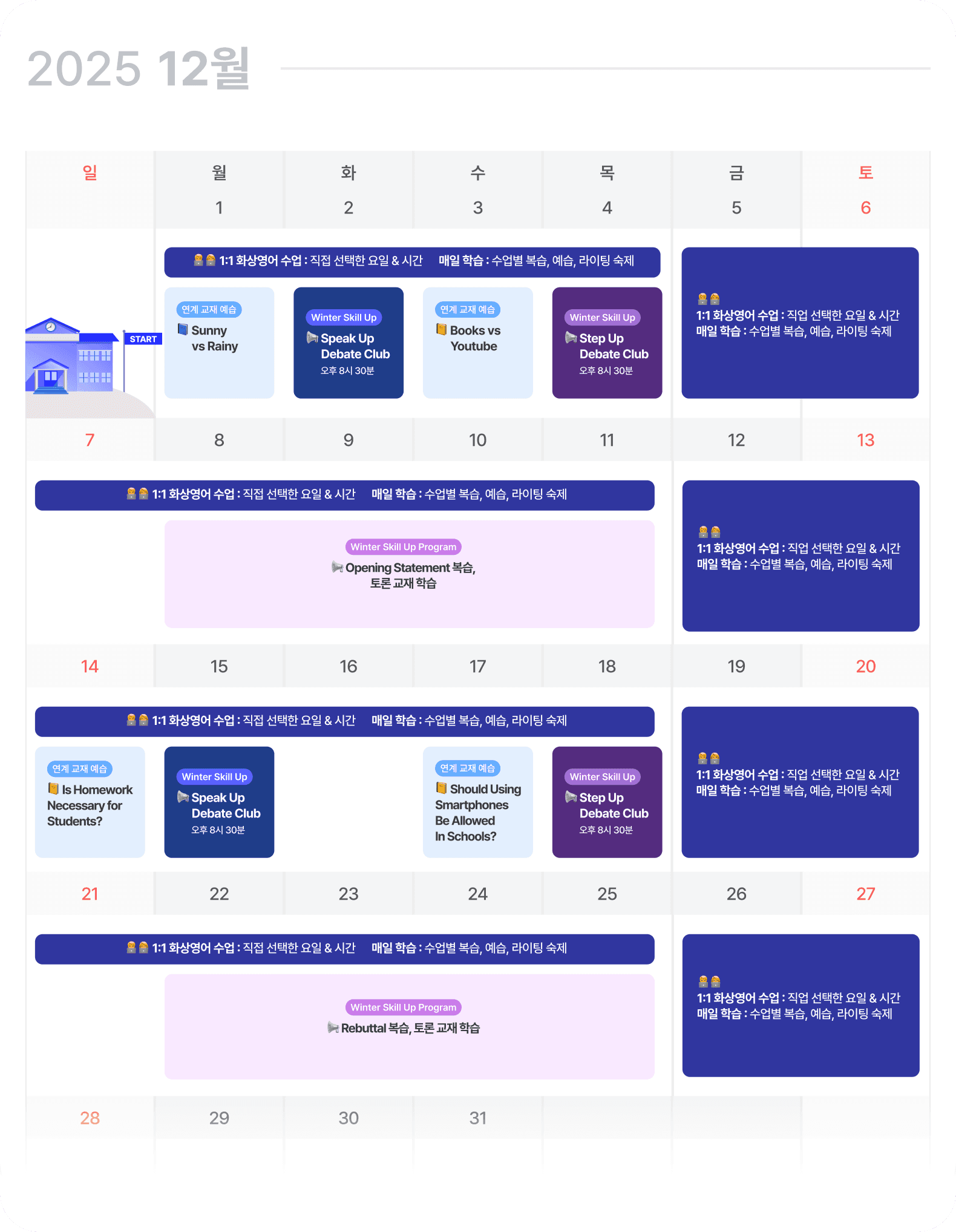 틴즈 겨울캠프에서는 각각의 특강과 연계되는 1:1 수업 교재를 제공합니다. (2026년 1월 제공)